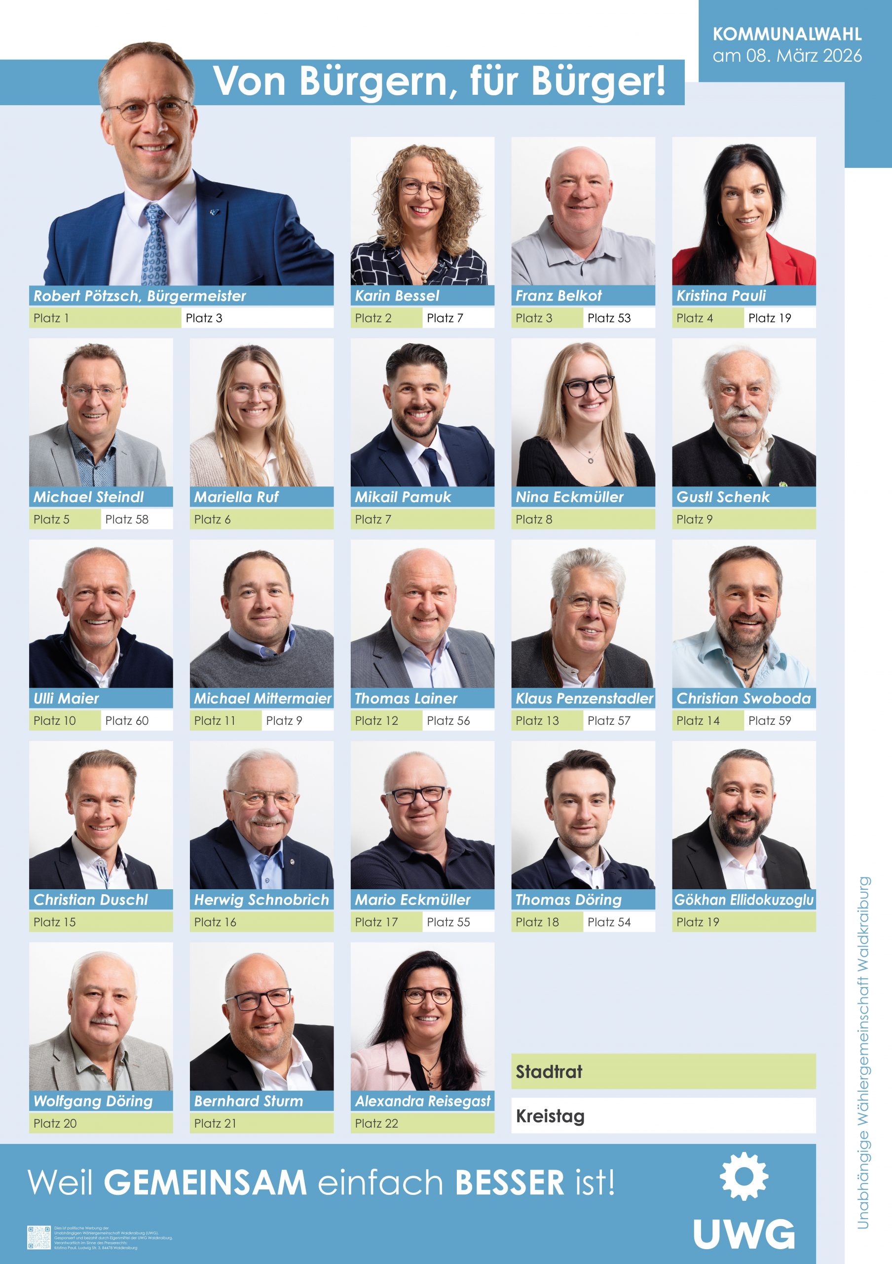 In den vergangenen Tagen waren viele von euch unermüdlich unterwegs, um unsere Plakate vorzubereiten, zu montieren und in der ganzen Stadt zu verteilen. Dieser Einsatz ist alles andere als selbstverständlich. Er zeigt, wie stark unser Zusammenhalt ist und wie sehr wir gemeinsam für Waldkraiburg einstehen.