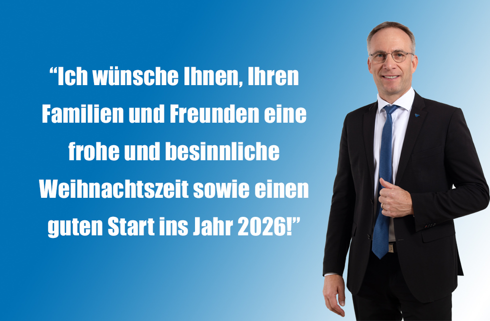 Ich wünsche Ihnen, Ihren Familien und Freunden eine frohe und besinnliche Weihnachtszeit sowie einen guten Start ins Jahr 2026!